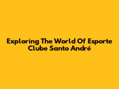 Exploring The World Of Esporte Clube Santo André