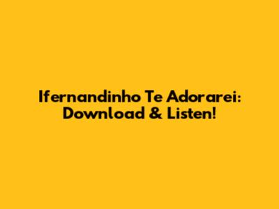 Ifernandinho Te Adorarei: Download & Listen!
