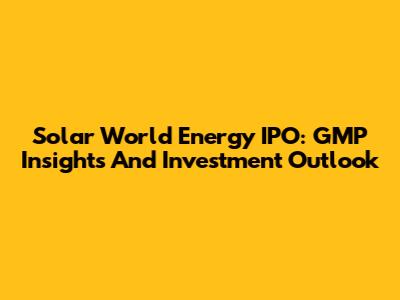 Solar World Energy IPO: GMP Insights And Investment Outlook